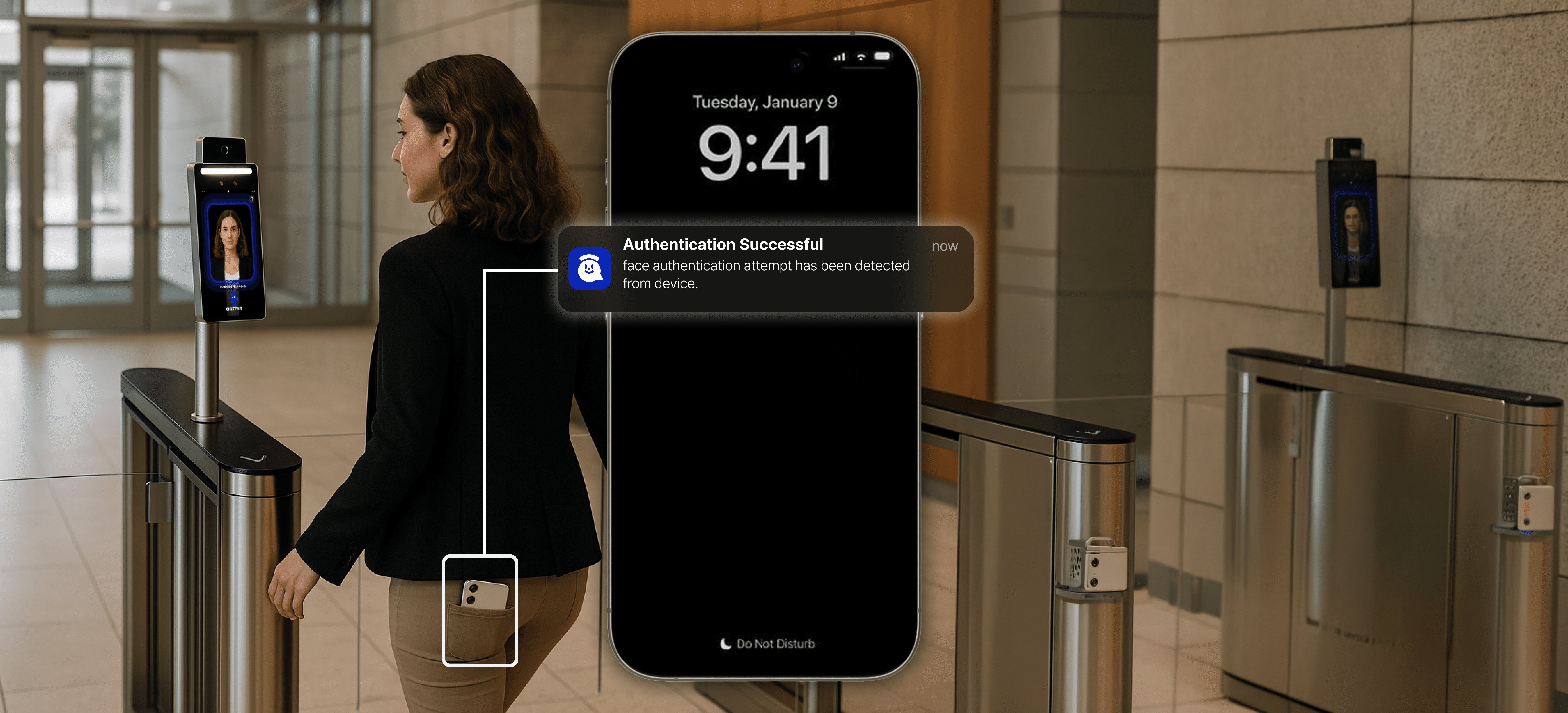 고스트패스는 생체 데이터가 저장된 스마트폰을 조작할 필요 없이, 한 번의 생체정보 등록 이후 생체정보인식 단말기와 저장 기기를 자동으로 연결하여 인증하는 기술을 제공합니다.